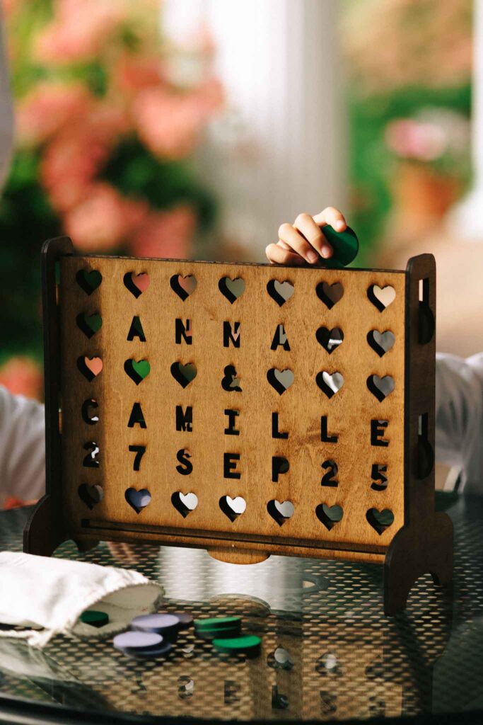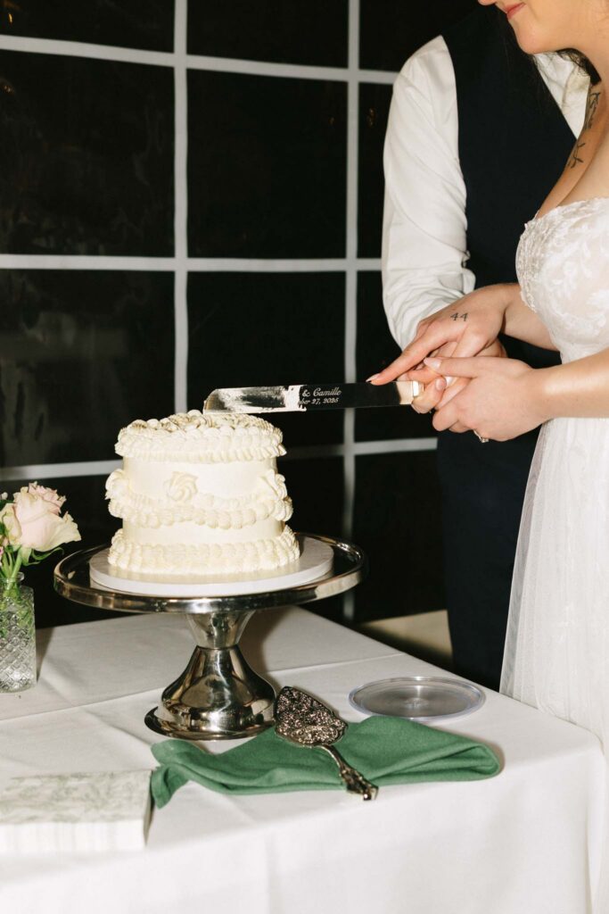 A bit about A&C: They love animals, especially their three dogs! Their first date was at a bowling alley, and after a short trip to Ireland, Camille made things official. Ten months later, he proposed on Valentine’s Day along the Seine River in Paris with the Eiffel Tower in the background (so romantic!!). They now live together in their cozy, cottage core home, spending Sunday nights cooking, planning for the week ahead, and cuddling their dogs.